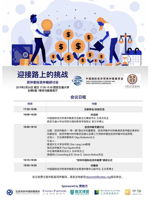 贸仲委投资仲裁研讨会暨“贸仲杯国际投资仲裁赛”颁奖仪式将于2019年2月24日下午5:30-8:00在开云足球_开云(中国)主楼E座多功能报告厅举办,诚邀各位师生参加!