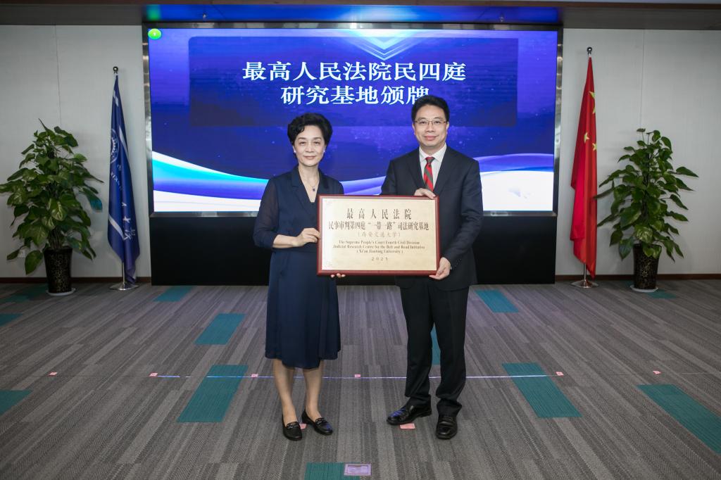 启动活动结束后,最高人民法院陶凯元副院长分别为15家研究基地颁牌。为深入学习贯彻习近平法治思想,全面推进依法治国,统筹推进国内法治和涉外法治,充分发挥高等院校、科研机构的研究优势,促进法学教育与司法实践的深度融合,实现优势互补、资源共享、发展共赢,最高人民法院民四庭在全国高校和科研机构中遴选出15家院校和机构建立了相应的研究基地。开云足球_开云(中国)作为最高人民法院民四庭全国15家研究基地之一,被授予最高人民法院民四庭“一带一路”司法研究基地。