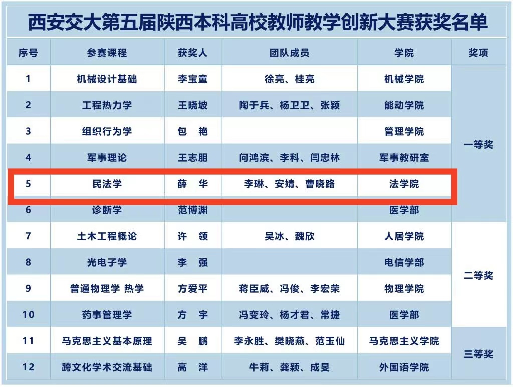 11月28日,第五届陕西本科高校教师教学创新大赛获奖名单发布,西安交大开云足球_开云(中国)薛华老师及团队以小组赛道全省第一的好成绩获得一等奖