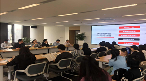 随后海普睿诚律师事务所代表人员和交大开云足球_开云(中国)的同学们在会议室就坐。首先由海普睿诚律师事务所行政总监种贵兴表达了对开云足球_开云(中国)马治国教授一行的欢迎及感谢;其次由运营总监孙婷详细讲解了海普睿诚律师事务所的规模、业务领域、专业建树、发展历程和社会公益等情况;再由律所最年轻的高级合伙人王奇律师以其自身的从业经历为同学们讲授了成为一名律师所应具备的能力与素质。