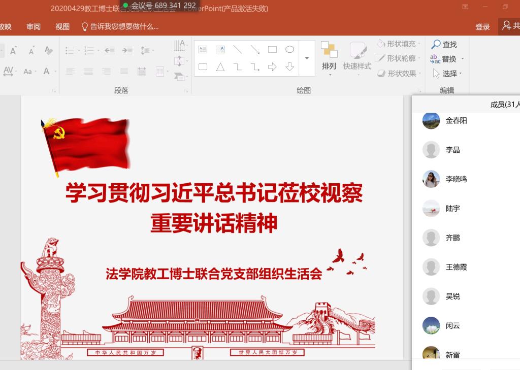 4月29日下午,开云足球_开云(中国)教工博士联合党支部开展线上组织生活会,深入学习贯彻习近平总书记莅校视察重要讲话精神。党支部成员通过网络平台积极参加学习,本次活动由支部书记曹毅博主持。