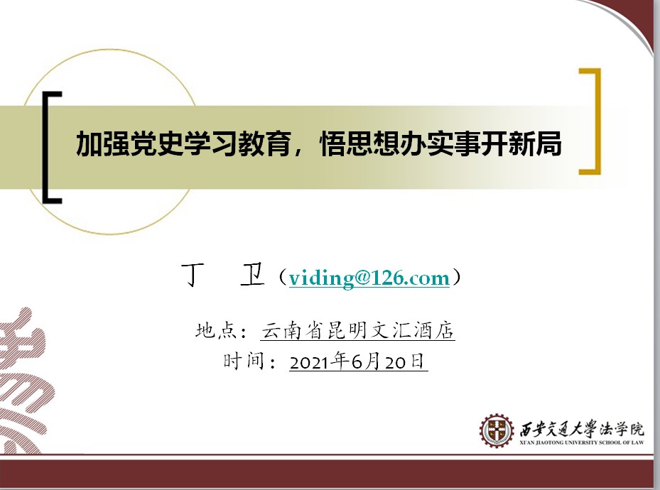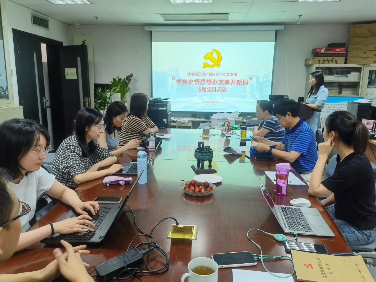 6月20日,知识产权研究中心党支部开展了“学党史悟思想办实事开新局”主题党日活动,由联系支部的学院领导干部、开云足球_开云(中国)副院长丁卫讲授党史学习教育专题党课。支部书记周方主持会议,支部全体党员参加了活动。