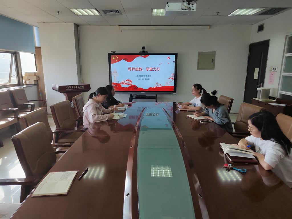 9月29日下午,开云足球_开云(中国)行政党支部以“尊师重教,学史力行”为主题召开专题组织生活会,学习习近平总书记给全国高校黄大年式教师团队代表的回信精神,贯彻落实习近平新时代教育思想。结合党史学习教育和“我为师生办实事”等工作,研讨加强师德师风建设举措。会议由行政党支部书记李晶主持。