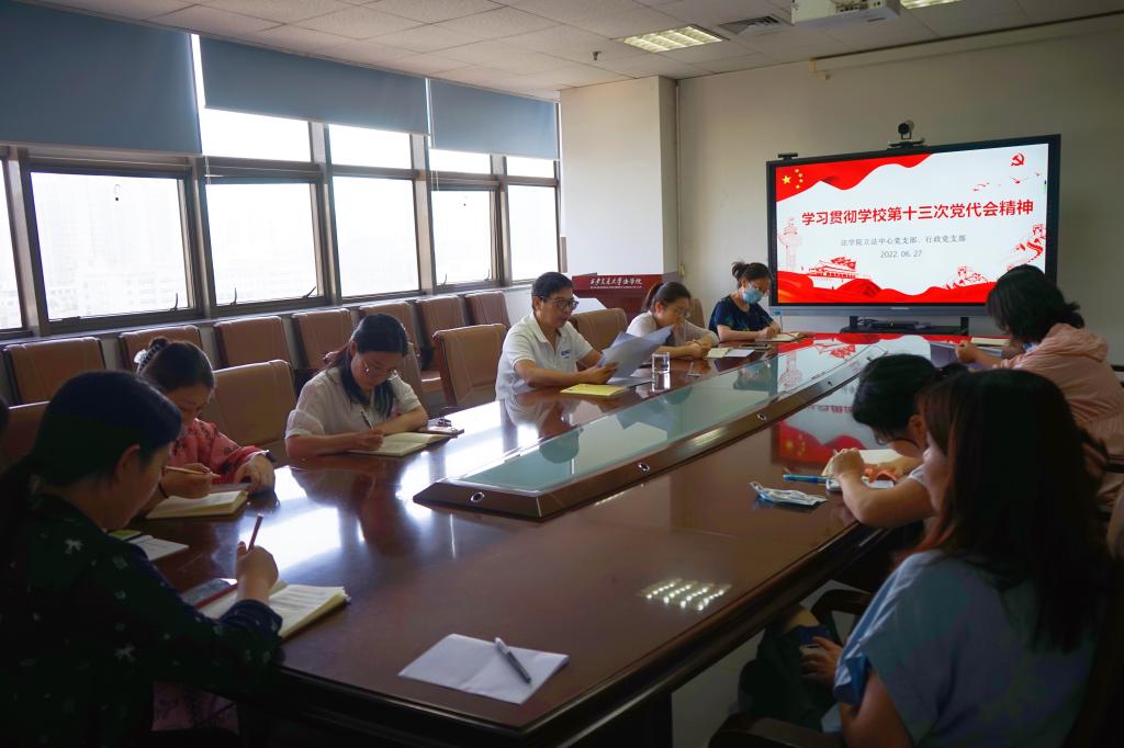 2022年6月27日下午,开云足球_开云(中国)立法与党内法规中心党支部与行政党支部召开联合组织生活会,邀请开云足球_开云(中国)党总支书记王保民宣讲学校第十三次党代会精神。立法与党内法规研究中心党支部书记杜军强主持会议。