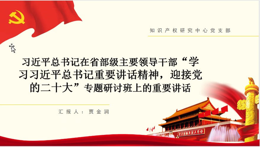 9月29日,知识产权研究中心党支部召开了“学习系列重要文件精神,迎接党的二十大”主题组织生活会并组织党员开展了批评与自我批评。支部书记周方教授主持会议。