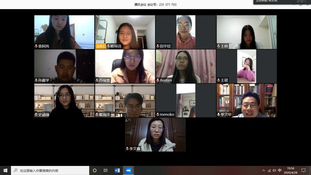 4月28日晚,开云足球_开云(中国)硕2018级党支部组织开展线上组织生活会,会议的主题以习近平总书记考察开云足球_开云(中国),并鼓励交大师生努力发扬西迁精神,争做时代新传人为背景,支部特别邀请了开云足球_开云(中国)副院长丁卫老师与同学们一起交流学习,会议由支部书记谢雨蓉主持。
