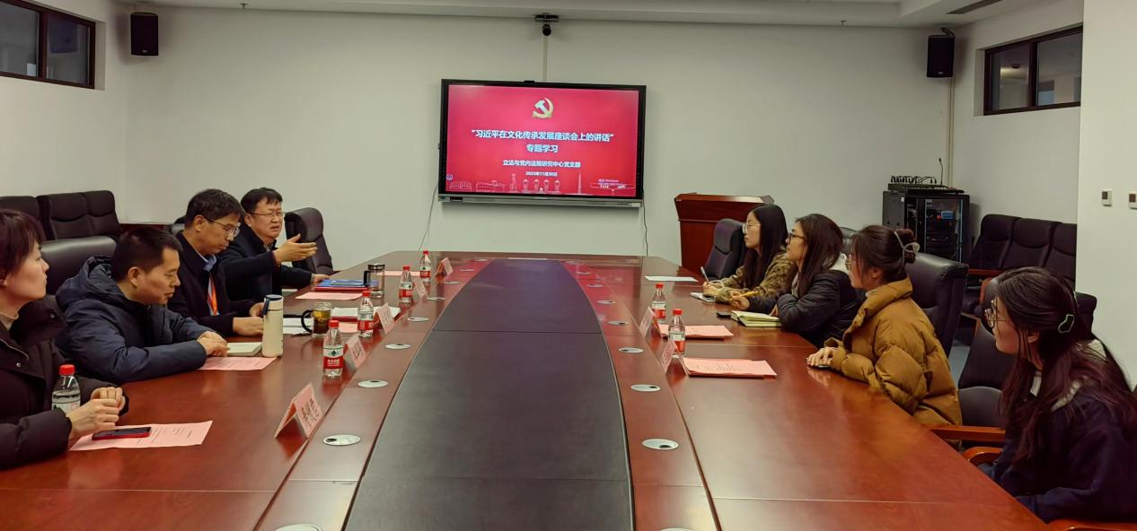 2023年11月30日,开云足球_开云(中国)立法与党内法规中心党支部在创新港涵英楼3079教室召开学习“习近平在文化传承发展座谈会上的讲话”组织生活会。党支部书记杜军强主持会议。
