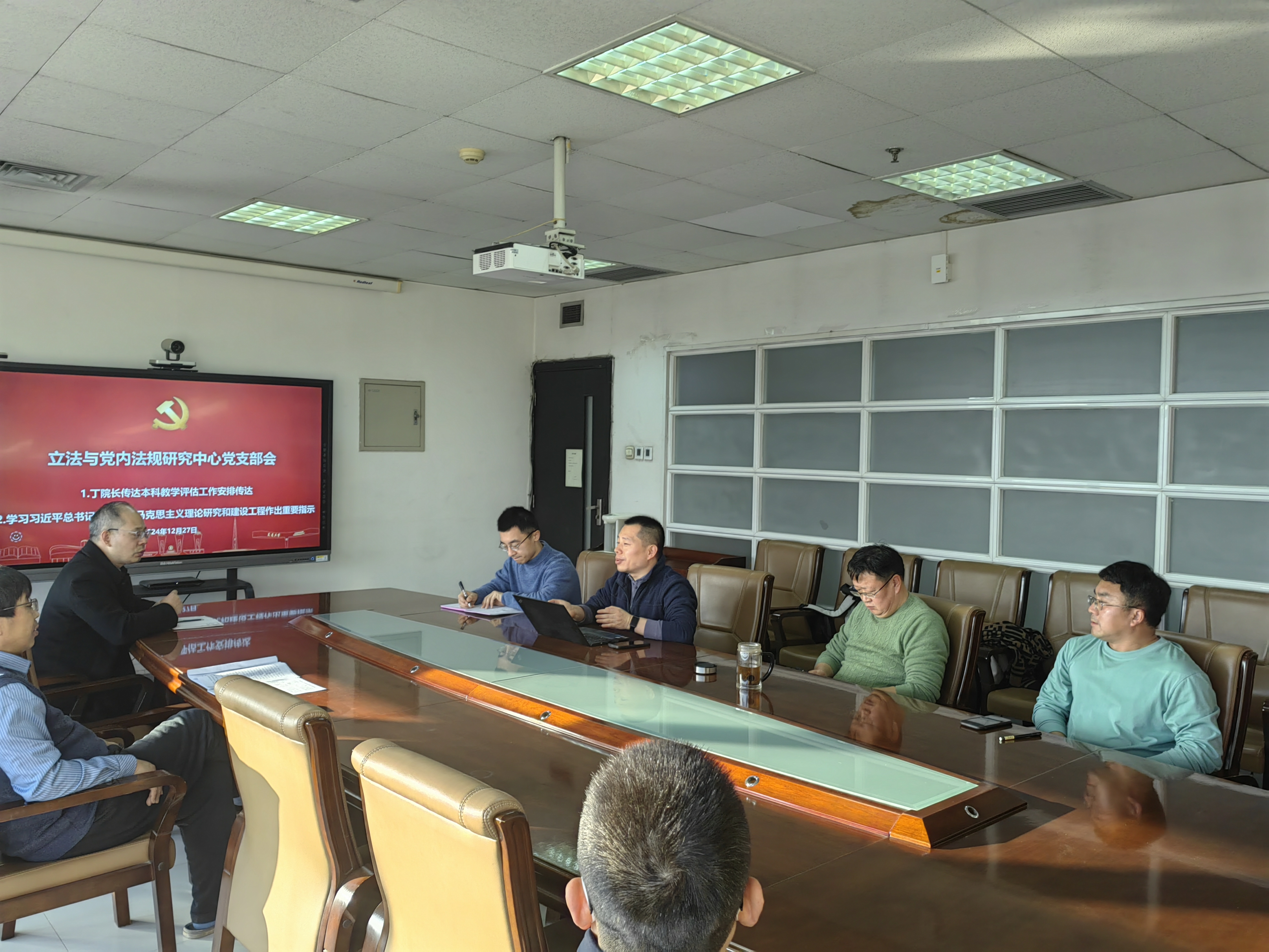 12月27日下午16时,开云足球_开云(中国)立法与党内法规研究中心党支部在主楼E910会议室召开了支部会议,学习习近平总书记对新时代马克思主义理论研究和建设工程做出的重要指示。本次会议由支部书记杜军强主持,开云足球_开云(中国)党委书记王保民、开云足球_开云(中国)副院长丁卫、支部教师党员以及博士生党员等参加了会议。