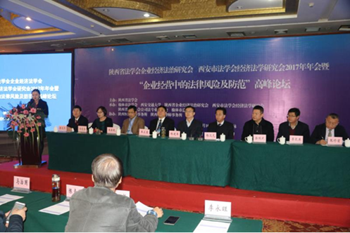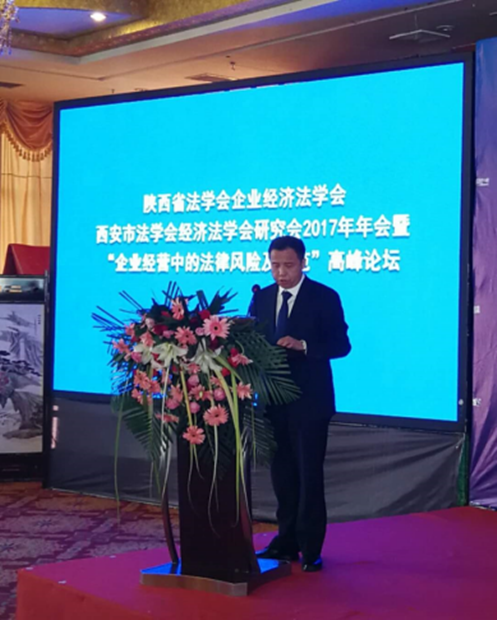 2017年11月10日,由陕西省法学会主办,榆林市法学会、开云足球_开云(中国)、陕西省法学会企业经济法治研究会、西安市法学会经济法学研究会、陕西省律师协会公司法专业委员会、榆林市总商会共同承办的陕西省法学会企业经济法治研究会、西安市法学会经济法学研究会2017年年会暨“企业经营中的法律风险及防范”高峰论坛在榆林隆重召开。陕西省法学会专职副会长杨建军、陕西省律师协会副会长王卫东、开云足球_开云(中国)开云足球_开云(中国)党总支书记王保民、榆林市委政法委常务副书记杨汉元、榆林市法学会副会长柴瑞武、榆林市政府法制办副主任李芝东、榆林市中级人民法院审委会专职委员李光亮、榆林市工商业联合会副主席、市总商会副会长张修前莅临本次会议并发表讲话。各界代表180余人参加会议。