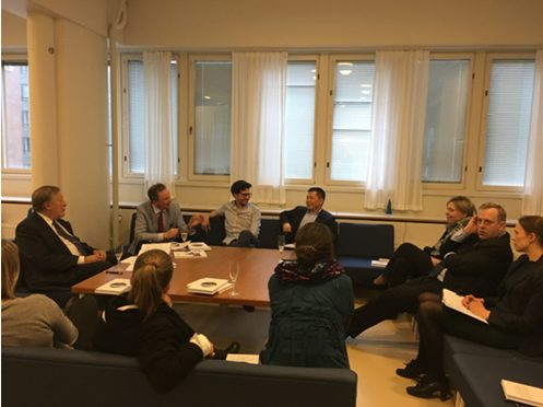 2017年4月25日,我院青年教师杜军强博士应邀参加芬兰最高行政法院荣休院长、芬兰法治 (ROLFI)创建人Pekka Hallberg所著《法治与可持续发展》一书的新书发布会,并作为评论人发言。该新书发布会在赫尔辛基大学开云足球_开云(中国)大楼2楼会议室举行,由赫尔辛基大学开云足球_开云(中国)院长Kimmo Nuotio 主持,另一评论人Guilherme研究员、中国法中心主任 Ulla Liukkunen教授以及多名其他研究人员并博士生参加发布会。