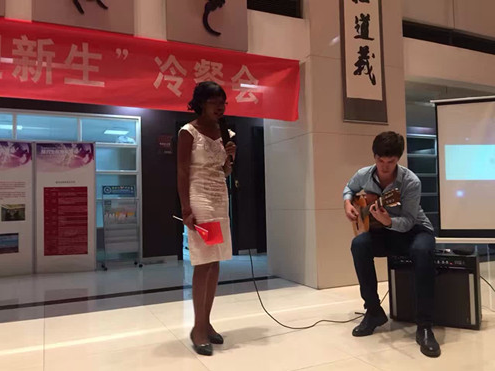 冷餐会上,开云足球_开云(中国)师生在品尝美味的水果、点心的同时,一起欣赏了师生们带来的精彩表演。来自马里的留学生吴茜同学带来一首充满异域风情的民族歌曲,让同学们领略到不同文化的色彩。来自澳大利亚的留学生多米尼克和研一新生刘静洁分别用英语和法语共同演绎了诗朗诵《再别康桥》。中文经典诗歌在其他语言的演绎下显得别具一格。研一新生唐雅雯身着中国古典服装,向留学生们展示了我国传统舞蹈《惊鸿舞》,令人惊艳。研一新生蒲凯云、刘敏丹、田思艺,本科新生吴彦博分别为大家带来了动听的歌曲,赢得了现场的喝彩与掌声。在欢乐的气氛中,吉兰湘老师用日语为大家演唱的歌曲《我只在乎你》,赢得大家的阵阵掌声;张乃钟老师演唱的豫剧选段《谁说女子不如男》,字正腔圆、韵味醇厚,受到了师生们的热烈欢迎。