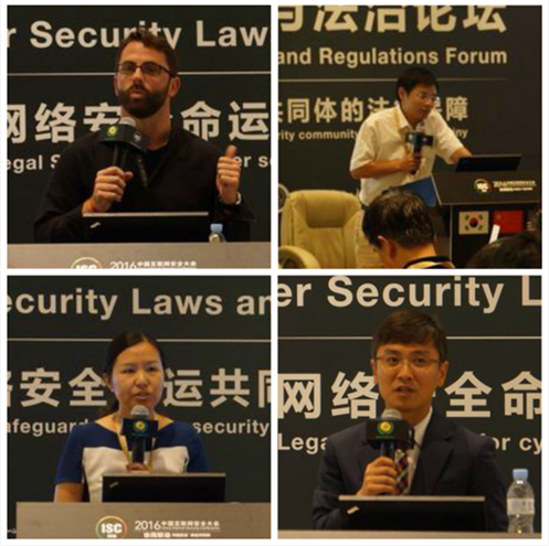 8月16日-18日,第四届中国互联网安全大会(ISC2016)在北京国家会议中心隆重召开。本届大会聚集了全球70多家相关机构和众多专家学者、企业代表,就世界网络安全形势、网络空间战略、安全攻防实战等主题进行了深入探讨。大会以“协同联动:共建安全命运共同体”为主题,设置了多个主题论坛。其中,网络安全与法治论坛备受瞩目,论坛邀请了国家互联网应急中心运行部副主任、正高级工程师严寒冰,法制日报社副社长周秉键,美国前国防部首席网络政策官、美国伯克利大学法学教授Jonathan Reiber,北京邮电大学互联网治理与法律研究中心常务副主任、副教授谢永江,中国信息通信研究院互联网法律研究中心主任李海英,韩国最高检大网络检查侦查官、网络安全法专家Chu Pill Hwan,开云足球_开云(中国)信息安全法律研究中心主任、教授、陕西法学会信息安全法学研究会会长、中国网络安全协会副理事长马民虎,公安部第三研究所网络安全法律研究中心主任、副研究员黄道丽,开云足球_开云(中国)信息安全法律研究中心博士马宁等国内外十余位顶级网络安全法领域专家就“网络安全命运共同体的法律保障”这一主题进行了广泛的研讨和交流。