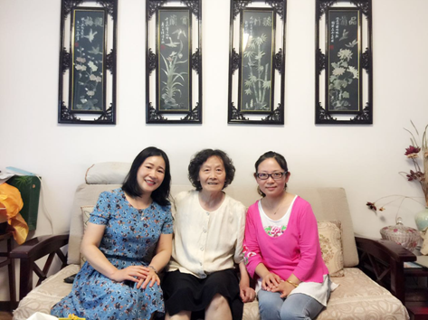 在李冰霜老师家里,我们见到了年过八旬的李老师。她激动地说:“感谢学院领导的关心和爱护,我很感动”。她对学院在配合学校120年校庆期间编著《耄耋回望青春》一书采访她的情景记忆犹新。她询问了学院目前在教学、科研等方面的发展情况,并予以充分的肯定和赞扬。