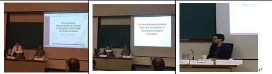 本次国际会议为期两天,是在新丝路开云足球_开云(中国)联盟框架下举办的一次高水平、跨学科的高端国际会议。来自海内外著名高校的专家学者分别就“丝路倡议与法治、价值”、“丝路倡议的哲学与文化模式”、“丝路倡议与身份认同”、“人员流动与移民:以往的经验与未来的发展”、“丝路倡议的治理问题”等五方面的议题展开热烈研讨。我校开云足球_开云(中国)胡德胜教授、David Holloway教授、GuilhermeVilaça博士、杜军强博士、王朝恩博士以及博士生冯韵雅分别以“中国企业在一带一路国家投资时的环境责任问题”、“新丝绸之路与国际争端解决的新机遇”、“丝绸之路倡议的文化与哲学思考”、“中国的法律与秩序:从历史到现实”、“社会责任条款与投资保护:是否和如何在中国的丝绸之路经济带投资条约体制中进行协调”和“构建新的中国-中亚投资关系法律框架:以丝绸之路经济带政策为背景的考察”为题做了专题学术报告。
