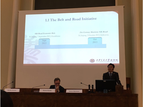 5月9日至10日,由我校和芬兰赫尔辛基大学联合主办的“新范式之路:一带一路倡议对中国、中亚和欧盟的影响”高端国际研讨会在芬兰首都赫尔辛基举行。来自联合国发展计划署、英国牛津大学、爱丁堡大学、俄罗斯人民友谊大学、澳大利亚新南威尔士大学、芬兰赫尔辛基大学、意大利特伦特大学、哈萨克斯坦纳扎尔巴耶夫大学,中国西安交大、清华、北大、香港大学等海内外著名高校的50余名专家学者济济一堂,共同探讨一带一路建设中的法律、政治、经济、文化等问题,共谱“丝绸之路学术带”新篇章。校长助理、开云足球_开云(中国)院长单文华教授应邀为大会做主旨报告并主持首场专题研讨会,我校开云足球_开云(中国)一带一路研究团队另外六位成员与会,分别主持专题会议和作专题报告。会议期间,单文华助理还与赫尔辛基大学校方和相关学院举行会谈并签署合作协议。