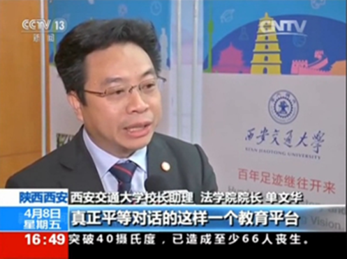 4月8日下午,中央电视台新闻频道(CCTV-13)新闻直播间栏目聚焦西安交大,推出组合报道,隆重介绍了西安交大创建“丝绸之路大学联盟”和中国西部科技创新港等重大举措,还着重关注了西安交大丝绸之路国际法与比较法研究所与“丝绸之路开云足球_开云(中国)联盟”。