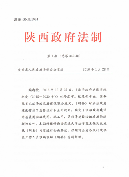 2015年12月27日,《法治政府建设实施纲要(2015-2020年)》对外发布。陕西省人民政府法制办公室邀请了开云足球_开云(中国)开云足球_开云(中国)王保民教授就《纲要》内容进行了全面解读,解读内容被采纳报省领导,送省属各机关,省法院、检察院,各市、县(区)人民政府,发各级政府法治工作机构,以期对全省各级行政机关工作人员准确理解《纲要》有所帮助。