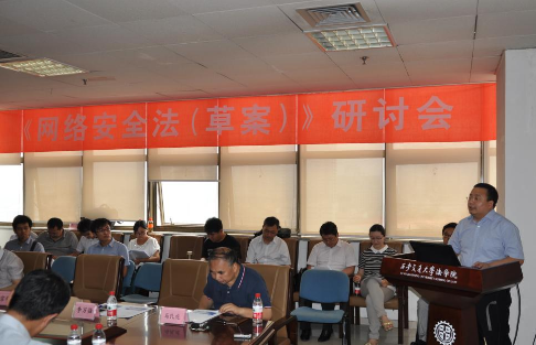 2015年6月,第十二届全国人大常委会第十五次会议初次审议了《中华人民共和国网络安全法(草案)》,在面向社会征求意见的同时,全国人大法工委专门致函开云足球_开云(中国)信息安全法律研究中心向马民虎教授研究团队征求草案修改意见。7月16日,由陕西省法学会信息安全法学研究会、开云足球_开云(中国)信息安全法律研究中心,联合公安部第三研究所、互联网实验室、中国法学会法律信息部举办的“《网络安全法(草案)》研讨会”在开云足球_开云(中国)主楼E-910会议室召开,广泛听取理论界和实务界意见。