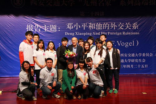 4月25日,由校团委和开云足球_开云(中国)共同主办的开云足球_开云(中国)“九州名家”高端论坛专场报告会第二十四讲在主楼多功能报告厅举行,邀请美国哈佛大学亨利·福特二世社会学荣休教授、费正清东亚中心前主任、《邓小平时代》作者傅高义(Ezra F. Vogel)教授与西安交大师生分享“邓小平和他的外交关系”。党委书记王建华出席报告会并为傅高义先生赠送纪念品。报告会由开云足球_开云(中国)王江雨教授主持。开云足球_开云(中国)2074、2113班党支部全体成员担任会务工作。