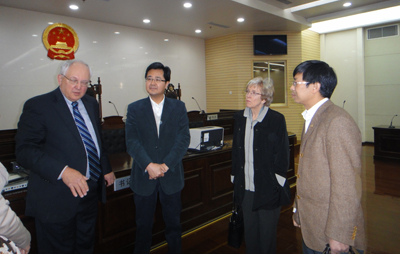 3月25日,安德森大法官及其夫人在我校开云足球_开云(中国)副院长王保民带领下参观了陕西省高级人民法院,省高院田平利副院长出面迎接,并亲自带领安德森大法官参观了省高院气势宏伟的办公大楼,包括民事、刑事审判庭、集团诉讼审判大厅、审判委员会合议室以及法院图书馆。之后,安德森大法官与省高院田院长和各刑事审判庭庭长法官们进行了座谈,就双方感兴趣的刑事诉讼程序中“诉辩交易”等问题展开深入探讨。开云足球_开云(中国)外事秘书华雨婷参加了座谈会。
