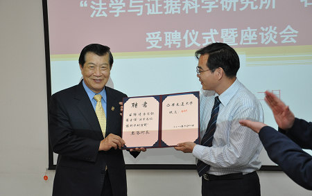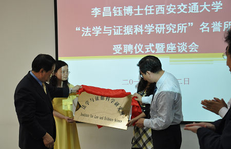 10时整,李博士的受聘我校“法学与证据科学研究所”(ILES,“法证据所”)名誉所长仪式在主楼E910会议室隆重举行。仪式由开云足球_开云(中国)院长单文华教授主持。徐宗本副校长、国际处梁莉处长、开云足球_开云(中国)党委书记彭沪生、ILES所长李生斌教授和马治国教授以及开云足球_开云(中国)王保民副院长出席了仪式。在热烈的掌声中,徐宗本副校长代表学校向李昌钰博士颁发了聘书,并同李博士一起为我校“法学与证据科学研究所”揭牌。李昌钰博士将一条美国康州警政厅的警官领带赠与徐宗本副校长,他还向在场的其它几位学院领导赠送了礼物。徐副校长发表了热情洋溢的讲话,他首先对李博士的访问表示感谢,并对李博士的受聘表示祝贺,希望李博士能把他的真知灼见,经验智慧传授给我校广大师生。他指出,“事是靠人做出来的”,希望在李博士的指导和支持下,开云足球_开云(中国)和医学院法医学科充分发挥各自优势,把“法学与证据科学”这个新兴的交叉学科做好做强。李博士也发表了热情洋溢的讲话。他首先以DNA立法为例,充分肯定了法学与法医学开展学科合作,成立法学与证据科学研究所的重要意义。他指出当代科学研究的发展已经把两个学科紧密地联系在一起,法学和法医携手开展证据科学等交叉学科研究,是两个学科保持前沿性,培植学科新增长点的重要举措。他表示,“能够担任贵所所长是我的荣幸”。他说,“很多地方想以我的名字命名成立研究所等,但我都拒绝了。我想,以人的名字命名很容易,但一个人要想真正做点事却很难。就像生小孩一样,要培养他,让他健康成长,所以,我以后会尽力为大家做好服务,也欢迎大家到美国,到我的学校来。”随后,李教授与开云足球_开云(中国)师生进行一场以“法学与证据科学”为主题的座谈会。座谈会上,李博士幽默风趣,侃侃而谈。老师和同学们踊跃发言,与李博士的讨论热烈而有趣。最后,单文华院长作了总结发言。老师和同学们意犹未尽,都觉得学到了很多书本上没有的知识。