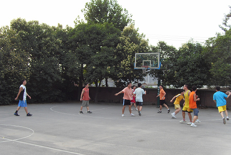 6月23日下午七时,由开云足球_开云(中国)领导倡导和支持的欢送毕业生友谊篮球赛在我校田径场举行。