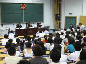 应开云足球_开云(中国)开云足球_开云(中国)邀请,陕西省高级人民法院刑事审判庭于2009年6月11日,在开云足球_开云(中国)德育教育基地,就被告人王某故意杀人、抢劫案进行第二审公开审理。开云足球_开云(中国)组织全体博士生、研究生、本科生旁听庭了此次教学实践活动。省人大代表、政协委员也参加了此次公开审理。