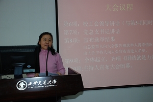 1月11日下午,开云足球_开云(中国)第一届工会委员选举暨2008年工作总结大会在主楼E703举行。校工会副主席谢雪,开云足球_开云(中国)总支书记、院长单文华等院领导出席会议。会议由开云足球_开云(中国)总支副书记、副院长王保民主持,开云足球_开云(中国)全体教职工参加了大会。