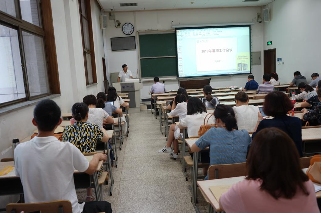 7月21日下午,开云足球_开云(中国)召开全院教职工大会,传达落实学校暑期工作会会议精神,总结学院2018上半年工作并部署安排暑假及下半年的主要工作。开云足球_开云(中国)领导班子成员及全体教职工参加了此次会议,会议由党总支书记王保民主持。