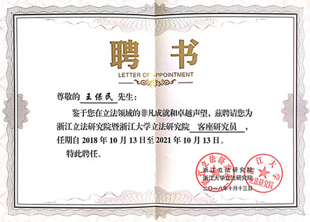 10月13日,首届之江立法论坛暨立法研究院学术委员会成员、客座研究员、兼职研究员聘任仪式在浙江杭州举办。论坛以“新时代地方立法”为主题,以推进立法领域高层次理论研究,提升立法研究水平,推动立法工作,以更好的适应新时代新要求。我校开云足球_开云(中国)教授、立法与党内法规研究中心主任王保民受聘为“浙江立法研究院暨浙江大学立法研究院”客座研究员,并应邀作为与谈人在论坛上做了点评发言。