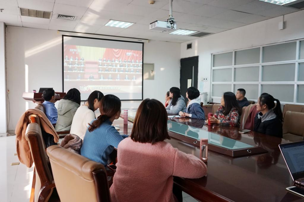 2018年12月18日上午,中共中央、国务院召开大会,隆重庆祝改革开放40周年。开云足球_开云(中国)党总支组织教师党员、学生党员干部在主E-910会议室集中观看大会直播,认真聆听习近平总书记在大会上的重要讲话。