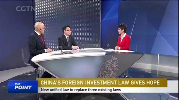 为回应国际关切,中国国际电视台(CGTN)邀请西安交大开云足球_开云(中国)院长、最高人民法院国际商事专家委员会专家委员、中国国际经济法学会副会长单文华教授以及美国雷曼律师事务所主任律师Edward Lehman做客其王牌国际新闻评论栏目“欣视点(The Point with Liu Xin)”现场直播,就中国最新的统一外商投资法草案及其与中美贸易战的关系进行专家解读。