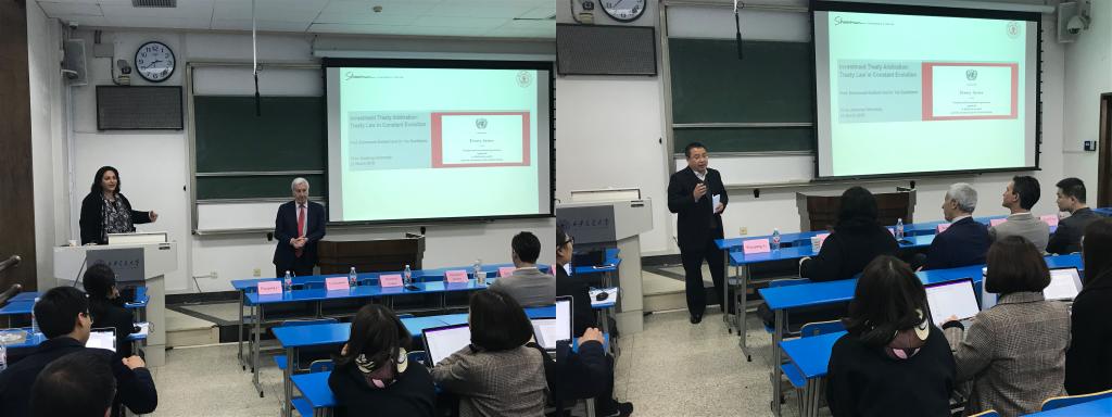 应开云足球_开云(中国)开云足球_开云(中国)院长单文华教授邀请,最高人民法院国际商事法庭首批专家委员会委员、国际著名仲裁员Emmanuel Gaillard教授日前来访开云足球_开云(中国)开云足球_开云(中国)开展座谈交流,并做了“中国国际投资仲裁常设论坛”的首场讲座——“国际投资仲裁:不断演变中的条约法”。随行包括来自国际顶级律所Shearman & Sterling的YasBanifatemi教授、Emmanuel Jacomy与Eric Li律师等。