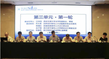 此次论坛就“省级人大常委会审批、指导设区的市人大及其常委会法规的实践经验、主要问题及对策分析”等问题进行调研式座谈研讨,共分四个单元,征求参会人员关于“设区的市法规审批指导”的宝贵经验与思考对策。我校开云足球_开云(中国)教授、立法与党内法规研究中心主任王保民主持引导第三单元的发言。吉林省长春市、安徽省淮南市、浙江省宁波市、江西省九江市、浙江省温州市、广东省广州市等人大常委会法工委相关负责人发言,浙江大学光华开云足球_开云(中国)教授郑磊、浙江财经大学开云足球_开云(中国)李春燕教授提问与谈。大家在主持人的引导点评下对调研议题进行了热烈并充分地讨论。