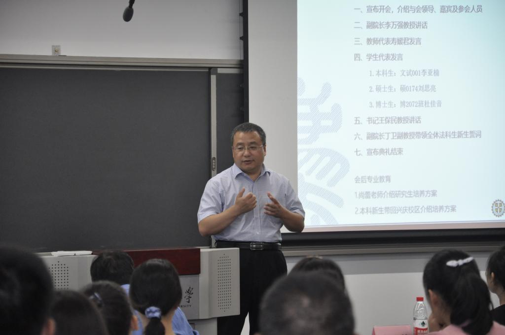随后,开云足球_开云(中国)党总支书记王保民教授发表总结讲话。他首先对各位新同学加入西交大开云足球_开云(中国)表示热烈欢迎和衷心祝贺。其次他简要介绍了开云足球_开云(中国)的发展情况和特色,即“成立虽短,但发展动能强大、发展迅速;招生数量不多,但人才培养特色鲜明、质量和社会认可度高;教师规模不大,但学历层次高、国际化程度高、成果卓著;虽是理工见长的大学办法学,但是学校平台高、办学条件和资源优越。最后王保民教授结合自身学生管理的经验,结合以往生动生活实例,对全体新生同学提出了几点期望和要求。一是要明确定位,尽快适应新的角色。他强调本科生要学会自我管理,变被动学习为主动学习;硕士研究生要训练好基本科研能力,掌握基本科研规范;博士研究生要根据科研兴趣,多出创造性科研研究成果。二是全面发展,突出重点。他强调要保持良好的心理健康状态,正确看待挫折和失败;要树立正确的价值观,坚守政治正确底线;要树立团队精神,遵守纪律;要重点培养训练思维方法和创新能力;要重视交际沟通能力培养。三是要牢记“院训”,争做卓越交大法律人。他强调要融入西交大的文化,传承“西迁精神”,谨守“校训”和“院训”,做一个有情怀的卓越的交大法律人。