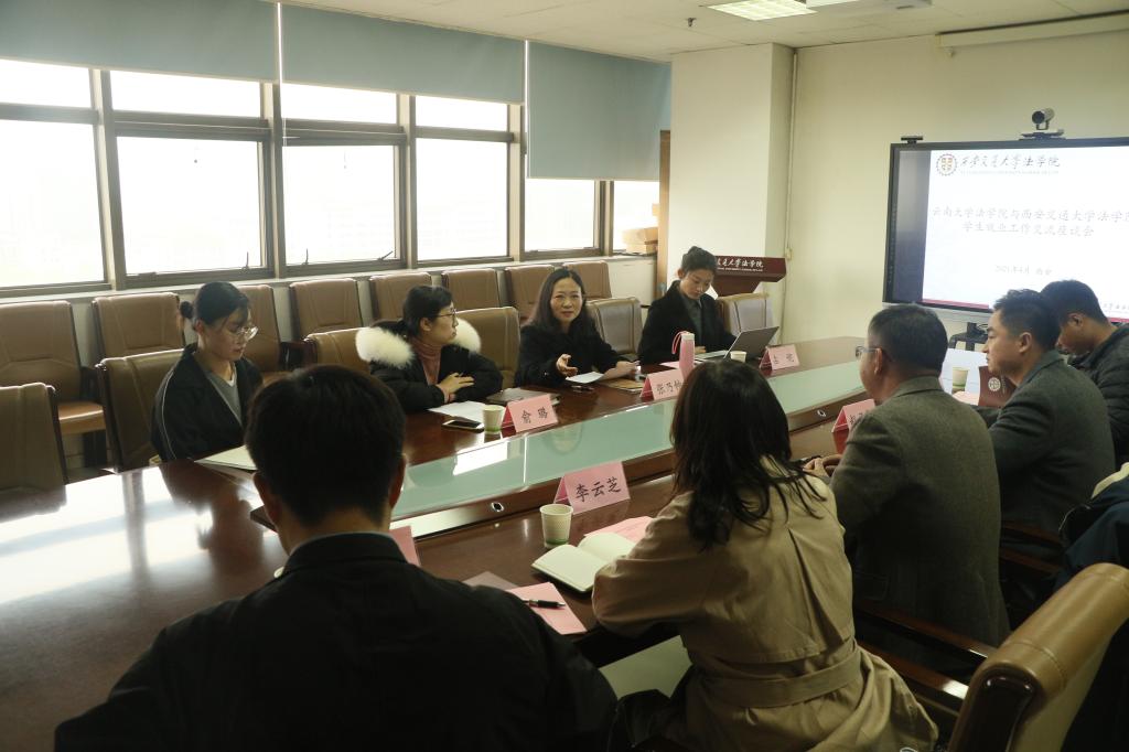 随后,双方针对法学毕业生就业工作普遍存在的重难点问题进行了交流。刘蔓琦书记介绍了云南大学开云足球_开云(中国)学生就业工作的困难点,他指出生源特点、家庭经济情况、用人单位隐形性别歧视、学生就业观念传统等情况制约了就业工作的开展,导致学生就业率偏低。他对交大开云足球_开云(中国)的就业工作表示赞扬,指出我院就业工作呈现系统化、提前化、精细化等特点,许多就业帮扶举措值得学习。张乃钟指出,我院非常重视学生就业工作,工作中形成了本科生和研究生就业工作“一体化”管理服务机制,在学院领导下以学生工作专职委员为主干,教学副院长、兼职辅导员、研究生导师和科研团队以及本科生班主任、学业导师为补充的就业工作队伍。在就业信息发布、就业经验交流、就业指导帮扶、实习平台搭建、校友资源等方面合理配置,精准发力,努力确保每一名毕业生顺利就业。特别是2020年开云足球_开云(中国)研究生毕业生在基层选调生,世界五百强企业就业等重要指标超额完成学校目标任务,取得建院13年以来历史最好成绩。学院就业助理丛珊也从毕业生角度对我校选调生考试温馨培训以及学院“管家式”的就业精准指导和帮扶等方面分享了自己的心得和感受。