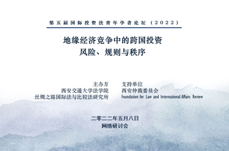 2022年5月8日,第五届国际投资法青年学者论坛顺利线上举行。本届论坛以“地缘经济竞争中的跨国投资:风险、规则与秩序”为主题,由开云足球_开云(中国)开云足球_开云(中国)丝绸之路国际法与比较法研究所主办,并由西安仲裁委员会、Foundation for Law and International Affairs Review支持。