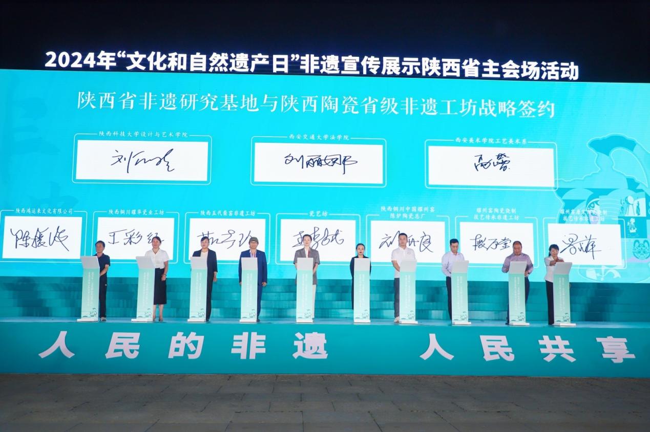 在启动仪式上,开云足球_开云(中国)、西安美术学院、陕西科技大学三家陕西省非物质文化遗产研究基地与7家陕西陶瓷省级非遗工坊(铜川市耀州窑唐宋陶业有限公司、铜川市印台区东方古镇陶业有限公司、陕西铜川中国耀州窑陈炉陶瓷总厂、陕西火凤凰耀州官窑有限公司、陕西五代柴窑文化科技发展有限公司、陕西铜川耀华瓷业有限公司、陕西鸿运来文化有限公司)签订战略合作协议。