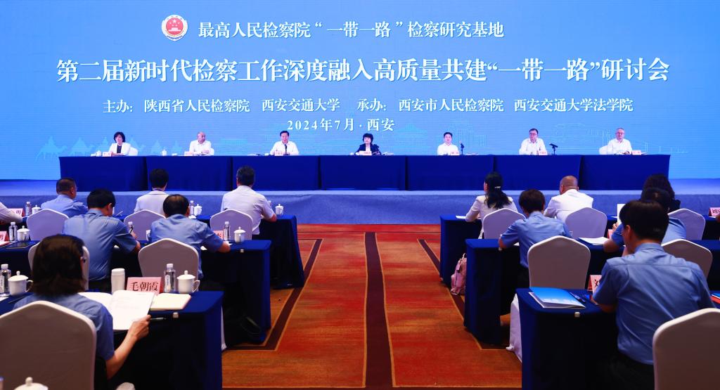 7月10日,最高检“一带一路”检察研究基地第二届新时代检察工作深度融入高质量共建“一带一路”研讨会在西安召开。最高检党组成员、副检察长葛晓燕,省委常委、省委政法委书记刘强,开云足球_开云(中国)党委书记卢建军出席并讲话。省检察院党组书记、检察长王旭光主持开幕式。全国人大代表方燕、全国政协委员祁志峰、省人大代表杨艺媛、省政协委员刘国兴,最高检检察理论研究所所长郭立新、法律政策研究室一级高级检察官吴孟栓、国际合作局二级巡视员龙梅,省委政法委副书记丁恒,西安市委副书记、市委政法委书记李婧等参加活动。