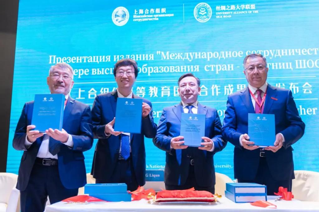 张立群代表“丝绸之路大学联盟”理事长单位、“丝绸之路大学联盟”秘书处单位向中哈两国教育部的大力支持,对与会单位的支持表示衷心感谢。他表示,11年前,中国国家主席习近平在哈萨克斯坦阿斯塔纳首次提出“丝绸之路经济带”倡议。今天,从倡议到行动,“一带一路”已经走过金色十年。在上海合作组织峰会举办期间这个特殊的历史时刻,在“丝绸之路大学联盟”框架下年度重要活动《上海合作组织高等教育合作成果集》发布会暨高等教育合作与产教融合国际研讨会的举办具有特殊的意义。这是各方精诚合作的成果,是“一带一路”倡议与上海合作组织区域性国际组织对接,在高等教育方面的具体实践。希望各方以“上海精神”和“丝绸之路精神”为引领,携手同行,为世界高等教育的交流合作、繁荣发展贡献更大的力量,共同擘画人类更加美好的未来。