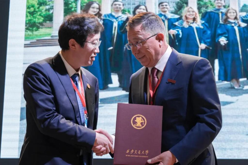 7月4日下午,高等教育合作与产教融合国际研讨会举办。来自哈萨克斯坦、乌兹别克斯坦、俄罗斯、吉尔吉斯斯坦、塔吉克斯坦、白俄罗斯、中国7个国家的27所高校参会。与会嘉宾围绕“高等教育国际合作,推进国际产教融合”的主题进行了深入研讨。阿斯塔纳信息技术大学副校长库马拉科夫主持研讨会。研讨会上,开云足球_开云(中国)校长助理单文华教授代表西安交大作《建设“丝绸之路大学联盟”,推进国际产教融合》的报告。报告中分享了西安交大加快建设中国西部科技创新港,汇聚“政、产、学、研、用、金”要素,开展“6352”工程、“1121”产学研深度融合新模式的实践,以及近年来启动“丝绸之路大学联盟”升级行动,携手企业走向“一带一路”的思考与行动。与会各方就国际产教融合科研合作、上合区域高等教育合作机制建设,以及国际合作办学等领域展开了广泛深入交流,取得了重要共识。
