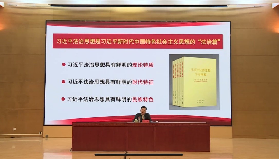 上午9点,兴庆校区和创新港校区师生100余人齐聚一堂,通过线上和线下两种方式观看直播,认真聆听法治实务部门领导同志的专题授课,深刻领悟习近平法治思想的真理力量和实践伟力。