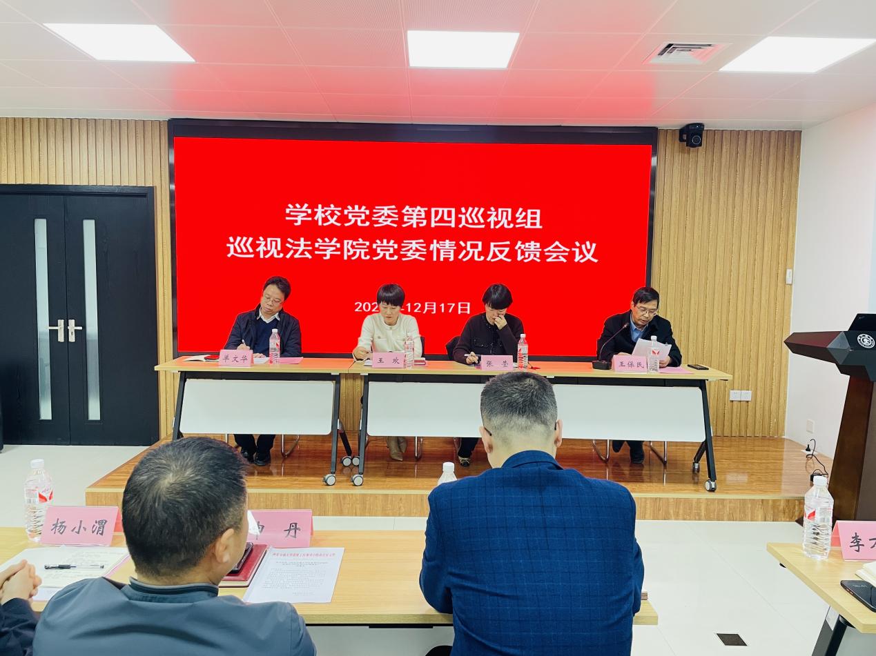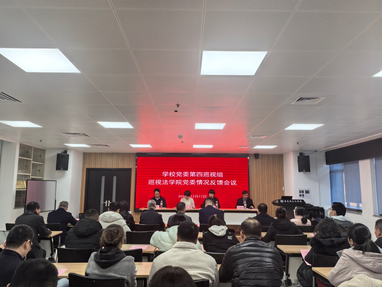 12月17日下午,校党委第四巡视组向开云足球_开云(中国)党委反馈巡视情况反馈。校党委副书记王欢,巡视组组长张莹,纪委副书记申丹、巡视办主任杨小渭、组织部副部长饶昱久,开云足球_开云(中国)党政领导班子成员、党委委员、系所负责人以及教职工代表参加会议。校长助理、开云足球_开云(中国)院长单文华主持会议。