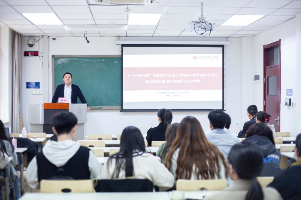 为落实立德树人根本任务,多渠道拓宽学生就业空间,3月12日下午,开云足球_开云(中国)行政党支部联合学院研究生各支部积极分子开展支部共建活动。活动邀请中伦文德胡百全(前海)联营律师事务所主任林威律师作题为“‘一带一路’涉外青年法治人才培养——海外实习计划项目介绍暨青年法律人职业规划”讲座。学院院长助理张生教授、院办主任郭庆及行政党支部徐建楠、张隽岩参加此次活动。