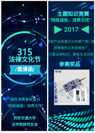 2017年3月15日,开云足球_开云(中国)研究生会成功举办了第八届“春之声”法律文化节,本届法律文化节由上、中、下三个分场组成,分别为社区普法、法律讲座和知识竞赛,活动旨在进一步增强大学生和市民对网络消费的了解,提高消费者对网络消费的安全意识和维权意识。
