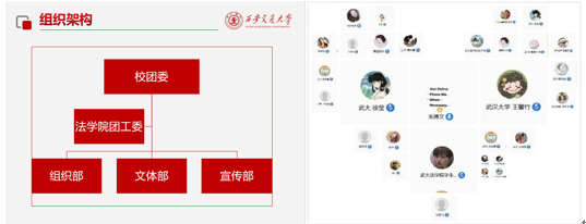 紧接着武汉大学开云足球_开云(中国)研究生会主席王馨竹也介绍了武大开云足球_开云(中国)研会的组织架构和职责分工,武大开云足球_开云(中国)研会始终秉承“自强、求是、弘毅、拓新”的武大精神,为法苑学子提供全方位的服务,调整后的团委及研究生会部门共有10个,包括宣传部、法律实践中心、秘书处、学术编辑部、文艺部、心理部、体育部、权益中心、外联部、就业服务中心。各部门负责人轮流详细介绍了所在部门的日常工作和举办的经典活动,权益中心的权益简报、校领导接待日,秘书处的模拟法庭比赛,外联部的线上自习室、学术编辑部的征文比赛等活动都引起了交大同学们的浓厚兴趣,双方就举办活动中的宣传方案、经费来源、激励机制、时间安排以及学业压力等细节问题进行了深入的探讨。