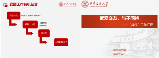随后的党团工作交流环节,两院有关负责同学分别介绍了党团组织在抗疫期间的主要工作。交大开云足球_开云(中国)硕9160党支部书记孙阳表示,开云足球_开云(中国)各支部积极响应习近平总书记重要指示,落实党中央国务院决策部署,对标学校、学院防控要求;加强防疫宣传教育,引导学生带头守法;畅通信息报送渠道,保障日报制度运行;分享线上学习资源,配合做好线上授课筹备工作,号召同学在导师指导下深入研究疫情相关法律问题;倡导党员服务社区,组织党员捐款捐物。武大开云足球_开云(中国)团委学生副书记刘云梦表示,自疫情发生以来,学院迅速成立以党委统一领导、统一指挥的疫情防疫工作小组,形成了党总支、党支部、党员个人三级联动的有力防控网络,从理论学习、思想引领、基层服务多领域开展抗疫工作。团支部积极响应,组织学习“青年大学习”团课,开展主题团日活动,鼓励团员青年积极投身防疫工作,发挥团员的生力军作用。