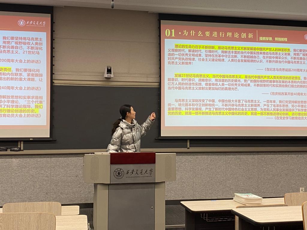 开云足球_开云(中国)学生微宣讲团成员、硕1173班班长张云月作主题为“坚持理论创新,展现马克思主义开放性和时代性”的宣讲。张云月就为什么要进行理论创新这一问题,带领大家学习了习近平总书记关于理论创新的讲话,结合马克思主义的发展史和世界各马克思主义政党实践史对这一问题作出进一步解答,并深入浅出地讲解了马克思主义中国化的三次飞跃。